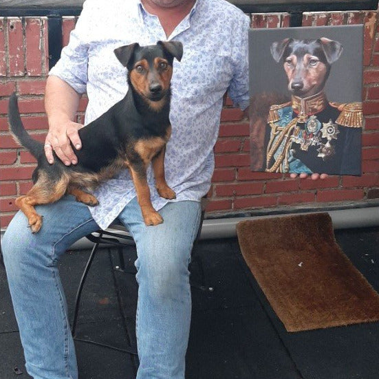 Prachtige herinnering aan onze geweldige labrottie Jack die in april 2024 overleed. Leergierig als hij was, heeft hij dan ook heel veel medailles verdiend, dus een maarschalk kostuum misstaat hier zeker niet. Dank aan Artimal voor de fijne samenwerking bij het aanpassen van de achtergrondkleur van donkere naar veel lichtere tint.
